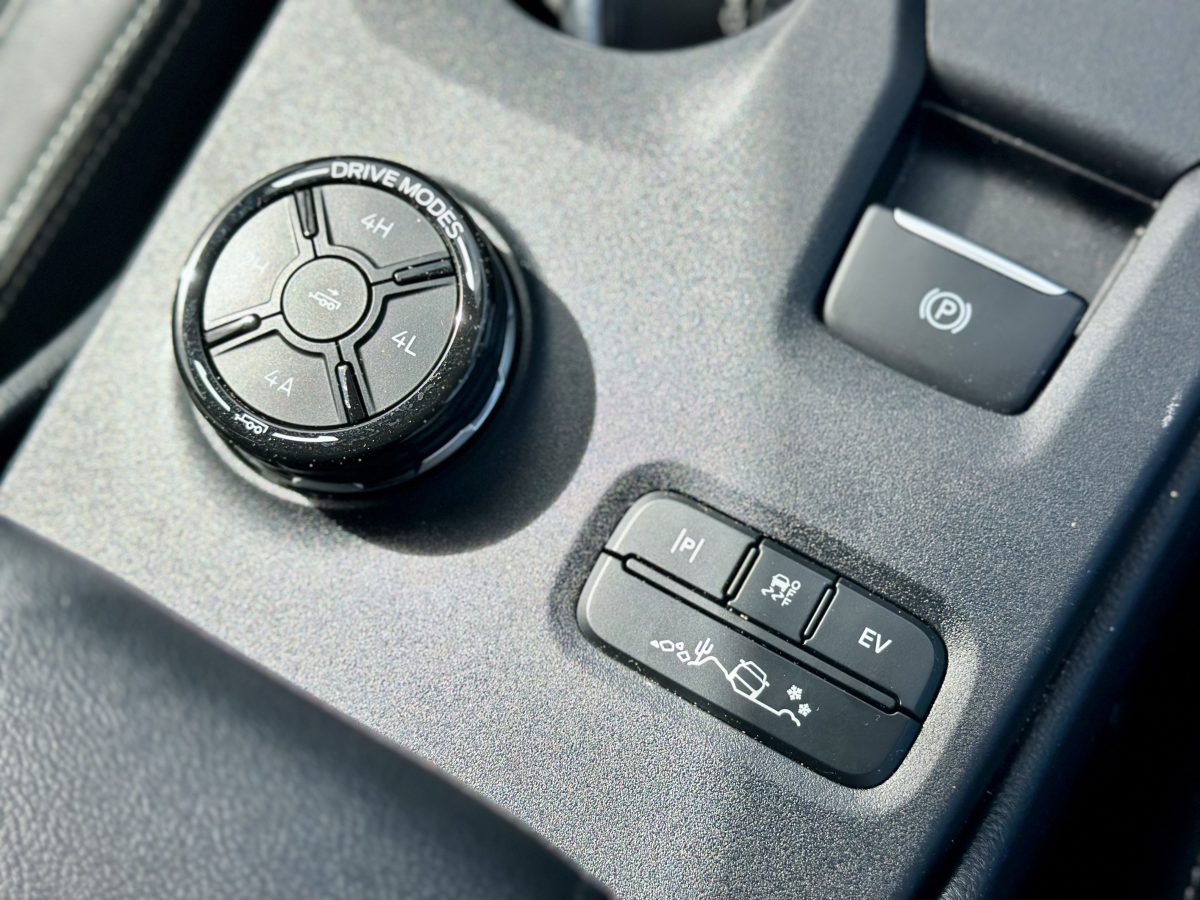 Press the EV button, and you can scroll through four modes: ‘Auto EV’ behaves like a normal hybrid, alternating between the two systems, ‘EV Now’ turns the Ranger into a full EV, ‘EV Later’ turns the electric motor off to save the battery charge, while ‘EV Charge’ uses the engine to top up the battery.
