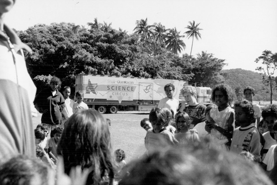 The Questacon Science Circus has been bringing science to kids all over the country (and beyond) for 40 years. Pictured here is a stop on tour in the Northern Territory in the 1990s. Photos: Questacon.