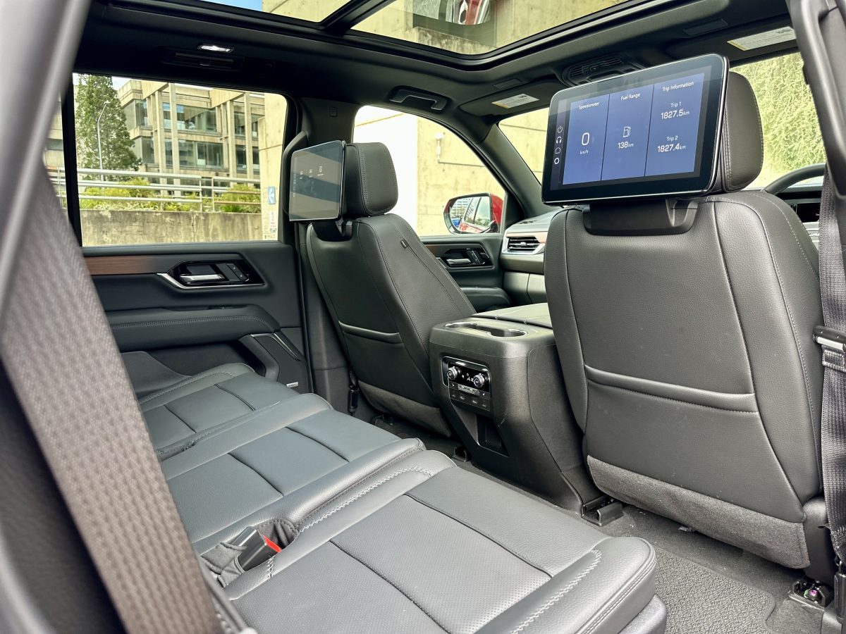 The spec sheet is also lengthy, featuring adjustable air suspension, retractable side steps, a panoramic sunroof, heated and cooled seats, a 16.8-inch infotainment screen, a Bose sound system, and even two 12.6-inch screens for rear passengers – perfect for placating kids on road trips.