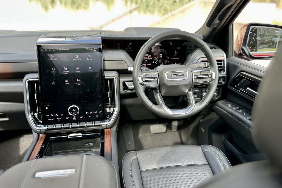 Moving this bulk obviously takes serious grunt, and the Yukon has it: a 6.2-litre V8 lifted from the Silverado (and old HSV Holdens). It’s thirsty at 12.8L/100km (with a good tailwind), but GMC reckons it’ll do 0-100 km/h in 5.8 seconds.