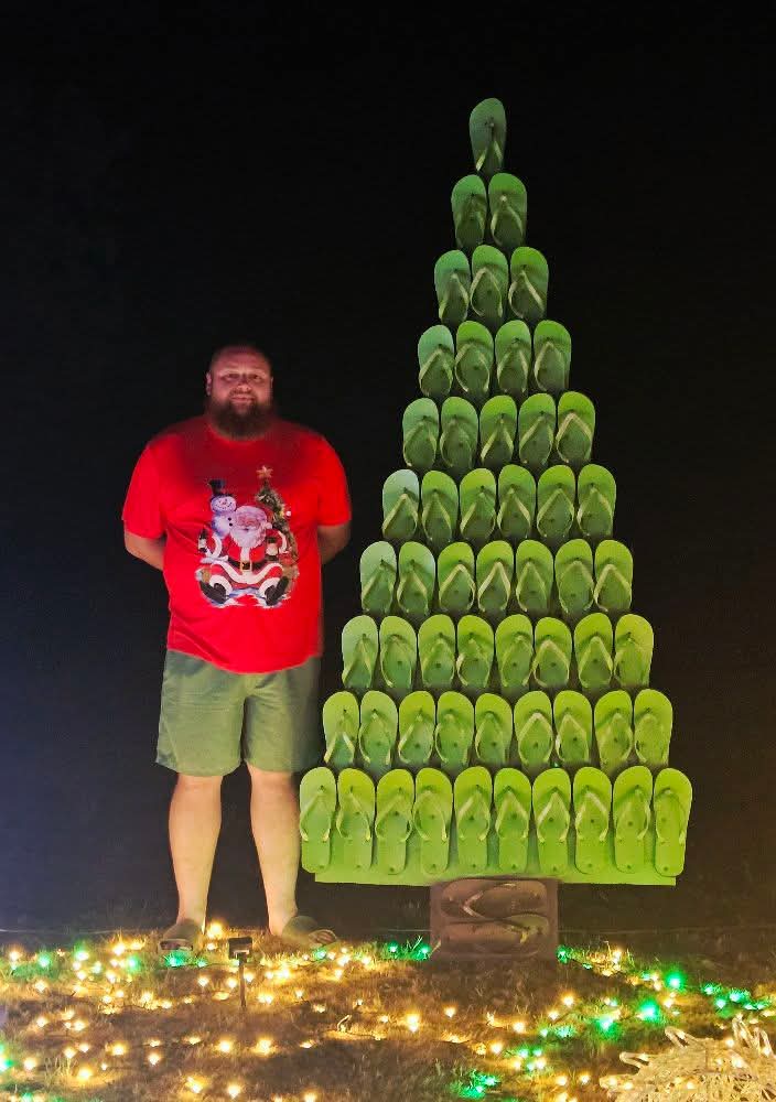 Mel’s favourite new attraction is an Aussie-themed Christmas tree made out of thongs. Photo: Supplied.