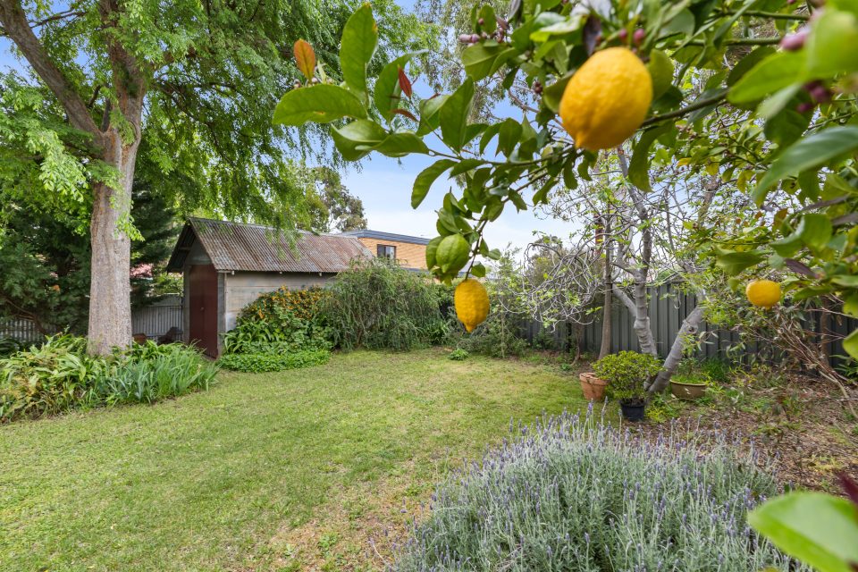 The outdoor space steals the show. With fragrant lavender bushes, fruiting lemons, lush shrubs and established trees providing shade, it’s a stunning space.