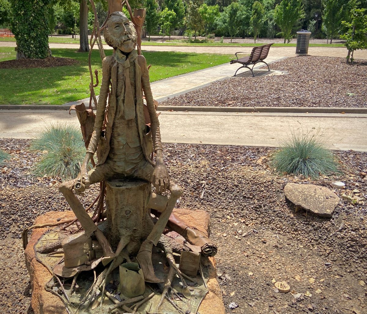 The Jolly Swagman was one of the city’s first public artworks commissioned by the council through the Victory Memorial Gardens Committee and unveiled by Wagga Mayor Bruce Hedditch on the 24th of August 1978.