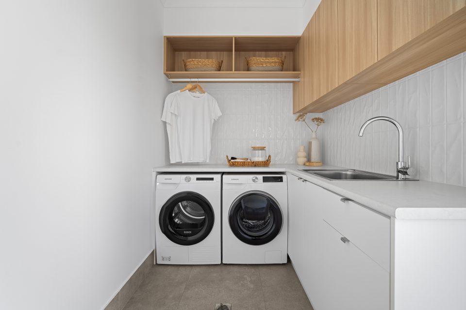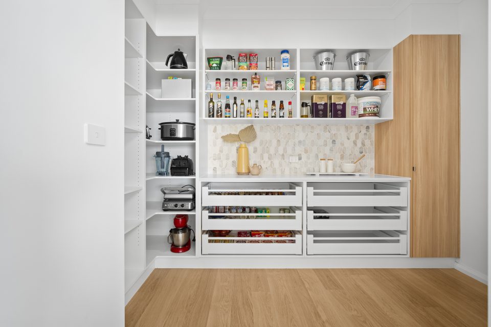 “The kitchen is a showstopper. The bench is massive and you certainly won’t have a shortage of prep space. It also features a massive hidden walk-in pantry and a double oven,” Ryan says.